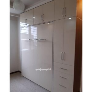 تخت تاشو دونفره دیواری سفید قهوه ای مدل K28