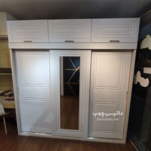 کمد ریلی آینه دار سه درب سفید طرح دار مدل C54
